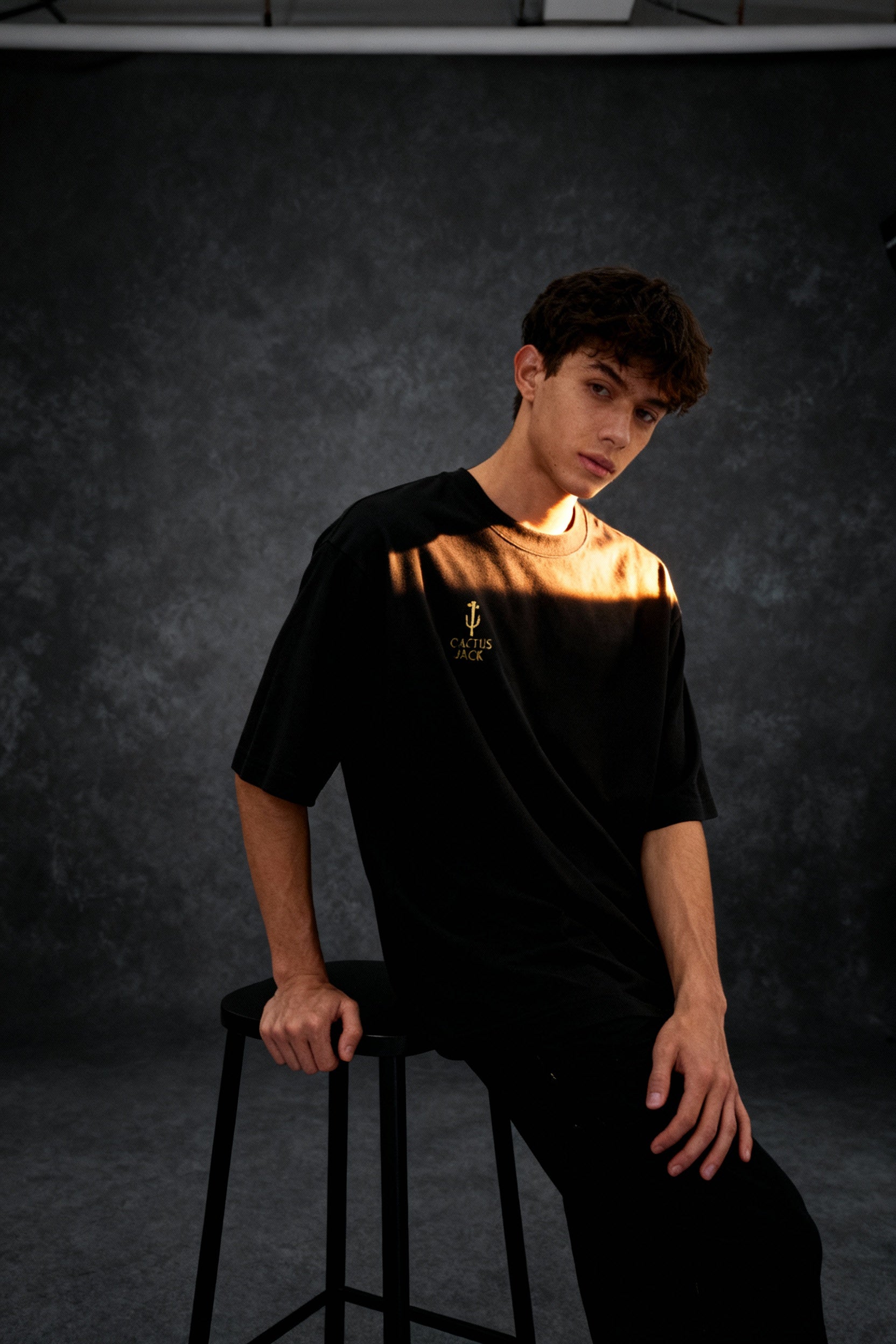 Bring subtle style with an edge of Western grit in the Cactus Jack Cowboy Logo Tee. This tee keeps it clean on the front with a small chest logo featuring the iconic Cactus Jack branding, while the back explodes with personality – a bold cowboy cactus graphic wearing a hat framed by distressed block lettering. The design embodies Travis Scott’s rugged roots and signature creative energy, striking the perfect balance of minimalism and bold statement.
